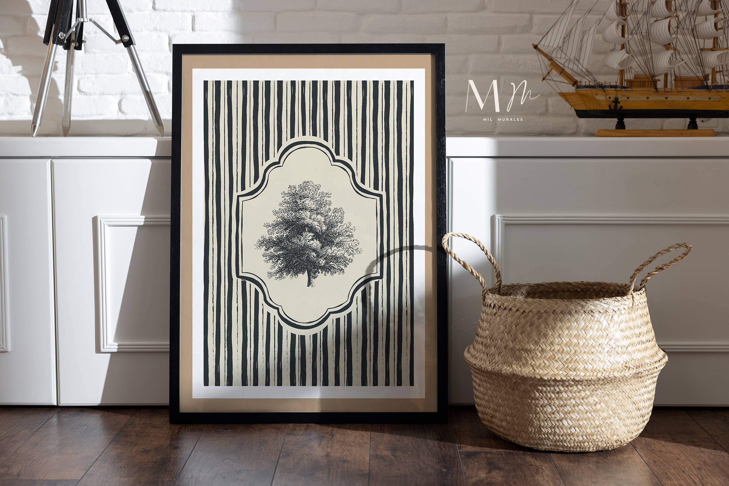 Sin marco, Marco madera natural, Marco madera negro